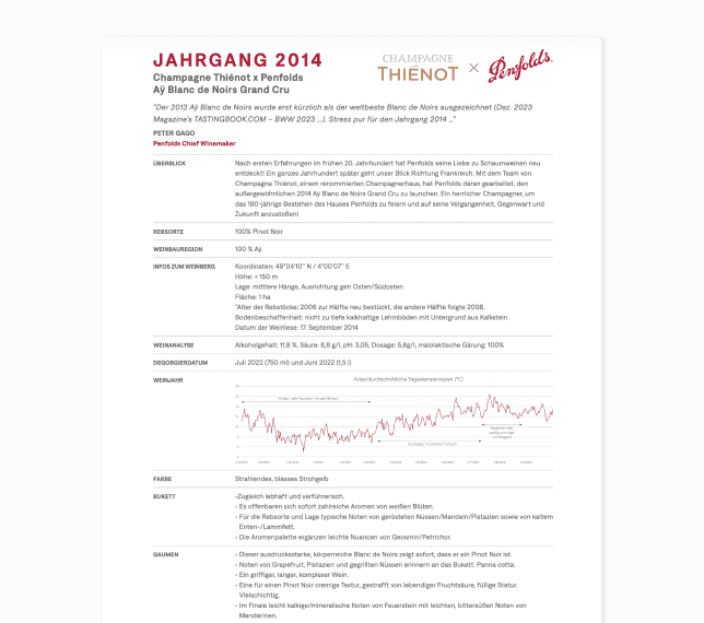 Übersetzen der Verkostungsnotiz Champagne Thiénot x Penfolds vom Englischen ins Deutsche